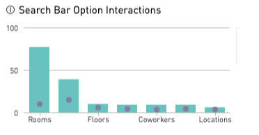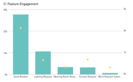 Chart shows all the advanced features, including those for individual cards on the homepage that your organization has configured, reflected by the total number of actions (bars) and number of unique users (points).