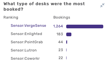 Displays the ranking of all desk types that were booked within the parameters selected.
