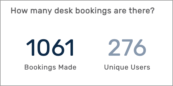 Displays the total number of desk bookings and the number of unique users included within the selected parameters.
