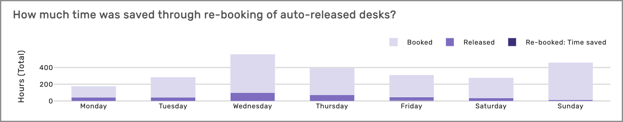 Chart shows the number of hours per day that were released when the user did not check in and desks were made available again for booking.