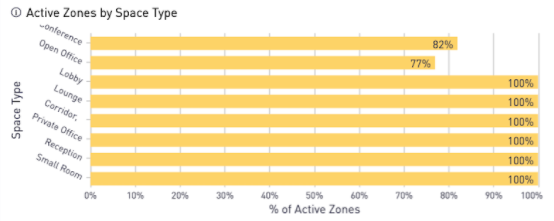 Bar chart shows the percentage of zones with a request by Space Type. The total number of zones is the number of visible, not disabled zones.