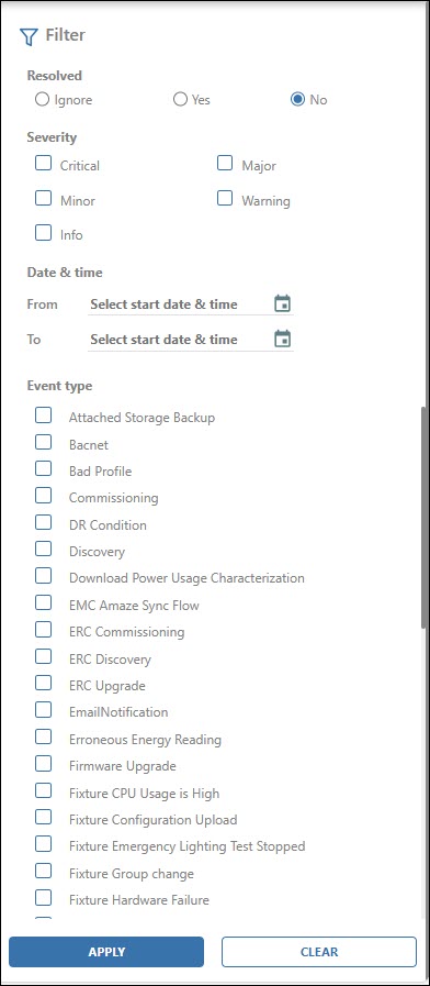At the top of the Events screen is a checkbox to include resolved events. By default, resolved events are not shown.