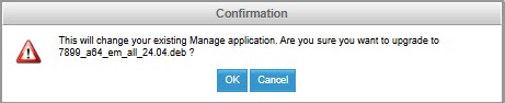 A warning message appears that this action will change your existing Manage application. If you are sure you want to upgrade, click OK.