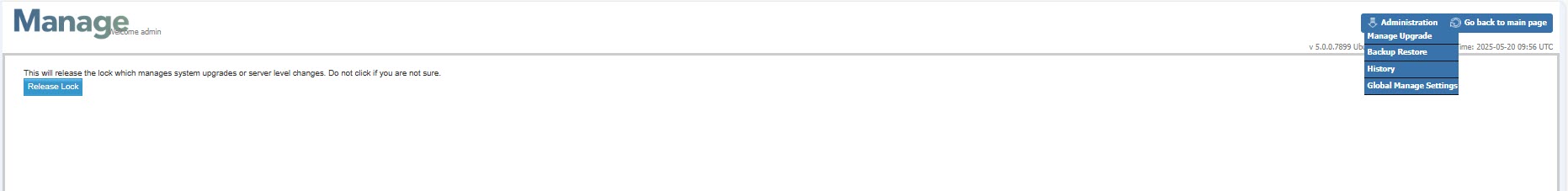 Warning: It is highly recommended that you back up your data on Manage before starting the upgrade process as a precautionary measure. If for some reason, the upgrade process fails, you can restore Manage with the backup. Refer to Backup and Restore Server Configuration and Data.